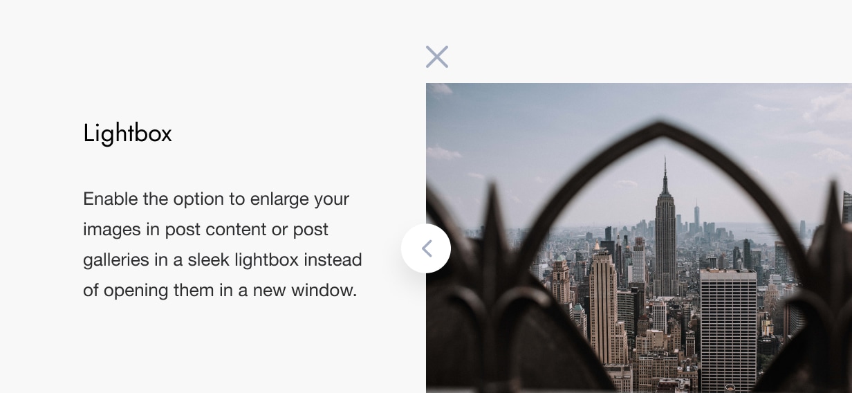 Enable the option to enlarge your images in post content or post galleries in a sleek lightbox instead of opening them in a new window. The module supports all gallery types and images in post content. And it’s responsive too.