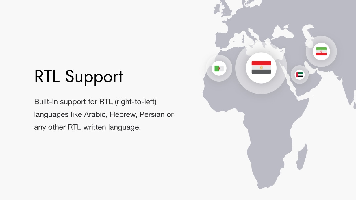 Built-in support for RTL (right-to-left) languages like Arabic, Hebrew, Persian or any other RTL written language.